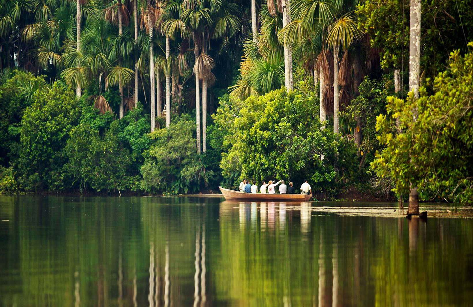 Breakfast, transfer to the airport for your flight to Puerto Maldonado. Upon arrival, you will take a 25minute boat ride on the lower Madre de Dios River until you arrive at the lodge. Settle into your elegant wooden cabin, then enjoy a delicious buffet lunch. Hike along the trails of Concepción for an introduction to the ecosystems of the Amazon basin. At sunset, during the Rio de Noche boat ride, observe the captivating transformation of the jungle in the company of your explorer guide, you may spot caimans hidden in the riverbanks and a constellation of stars of the southern hemisphere. Dinner. Night of lodging.